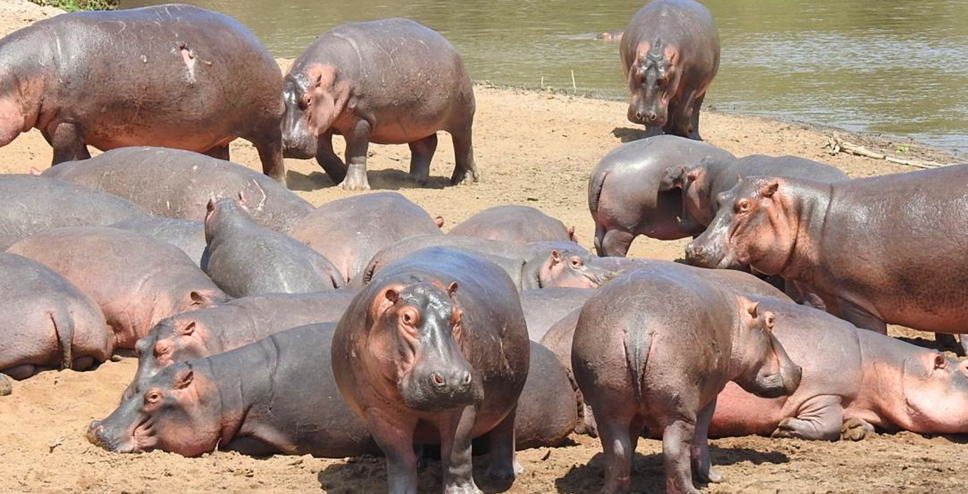 By September, elephant can be seen daily and the numbers of buffalo are phenomenal with herd upon herd of 1000 strong grazing the dried-out flood plains. Hippo and crocs numbering in thousands get increasingly confined to shrinking pools and mud wallows, with regular fights erupting amongst the hippo bulls. Large herds of topi also concentrate into the flood plains. The predators are here in force, especially lion and spotted hyena. Male lion are characterized by very short manes, but large powerful bodies.